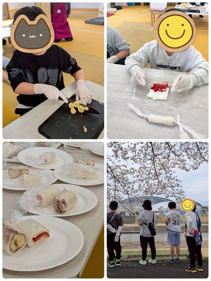 花見🌸&フルーツ🍌ロールサンド作り