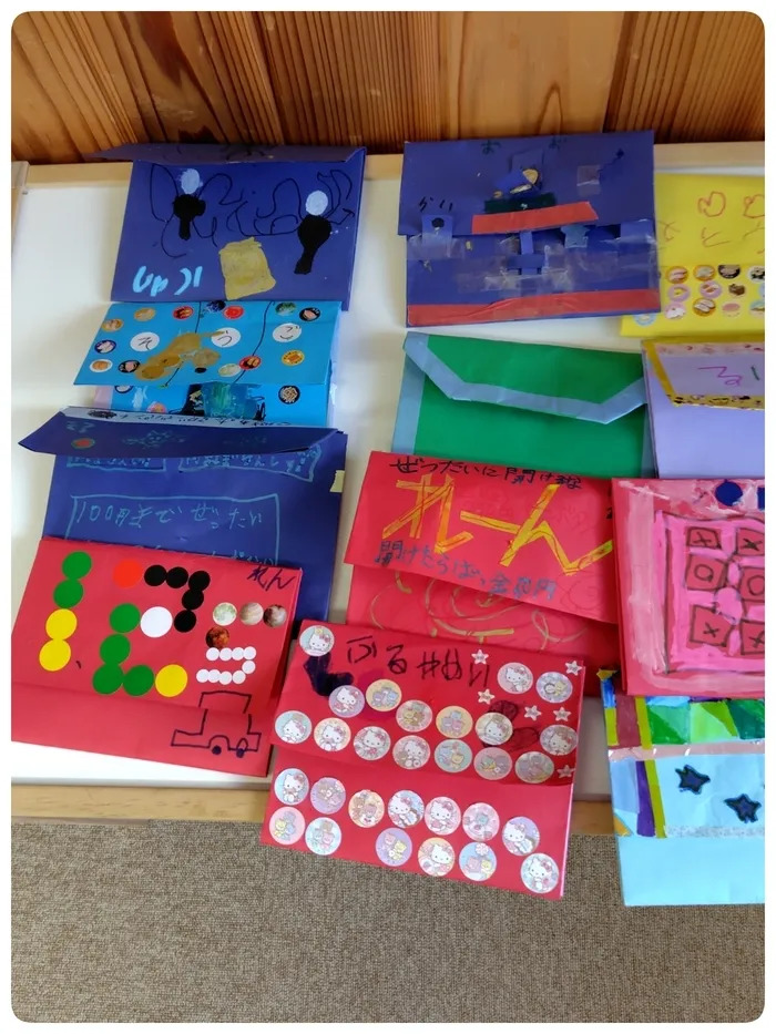 画用紙を折ったり、糊付けしたりと先生が手順を説明して行くのを聞きながら財布を作っていきます✨